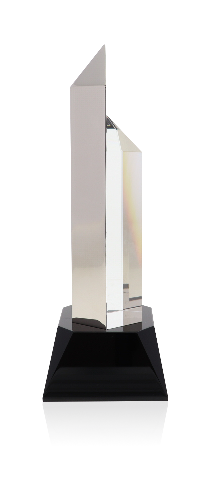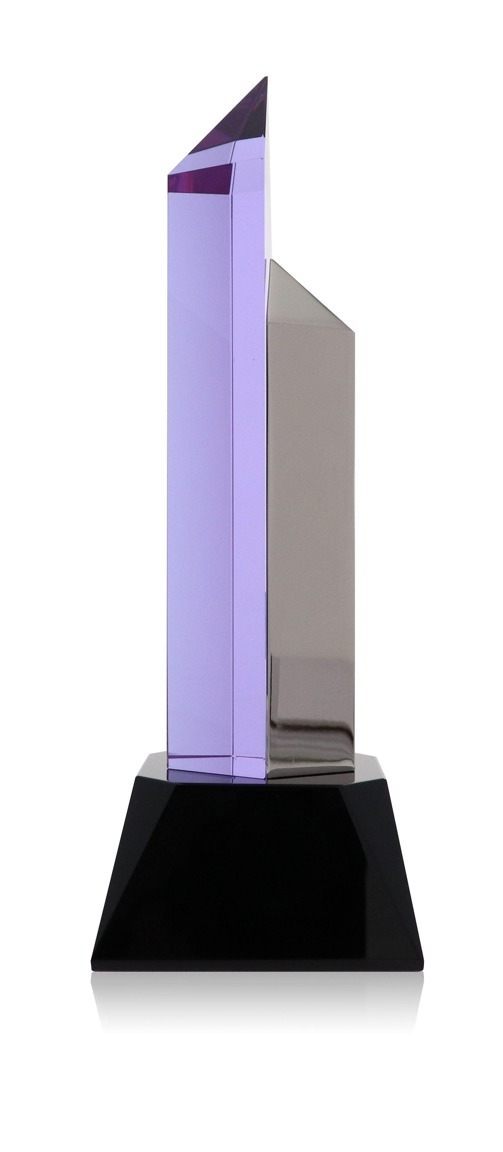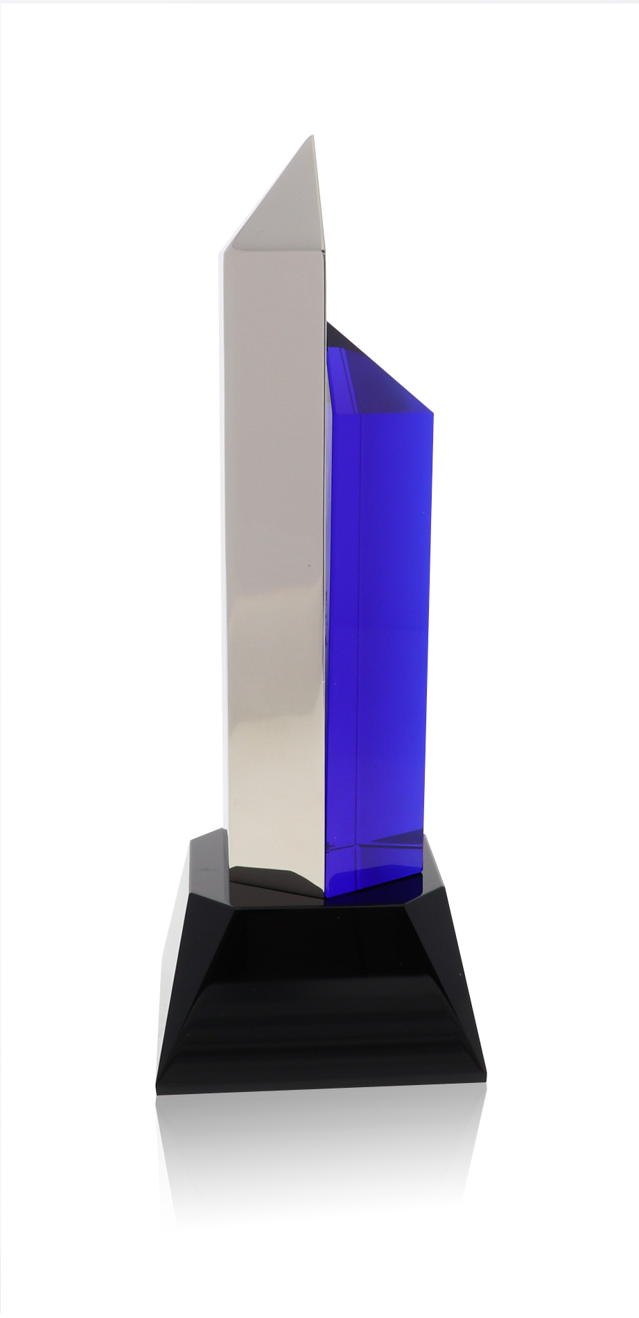 For creating your own custom award, see below our extensive hexagon crystal and metal options. These brilliant hexagon towers are available in sizes small (4"), medium (6"), large (8"), and extra large (10") with a wide range of color options that include blue, green, red, black, purple, clear, gold, and silver. While some combinations are shown below, these exclusive awards can be mixed and matched from the available sizes and colors to best represent your company or brand. Furthermore, they can be rotated to make either direction the front. We also have available an expansive base section for different clear and black bases.