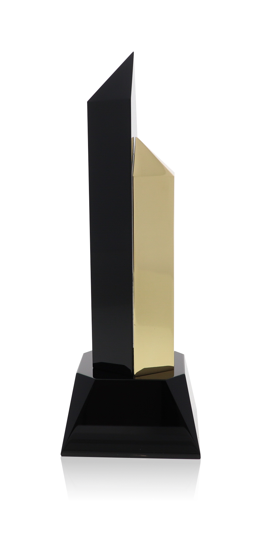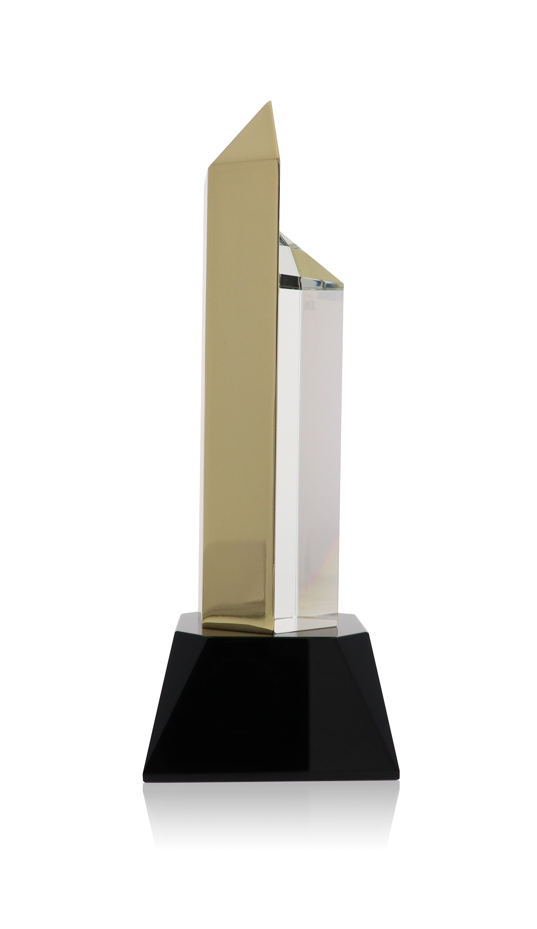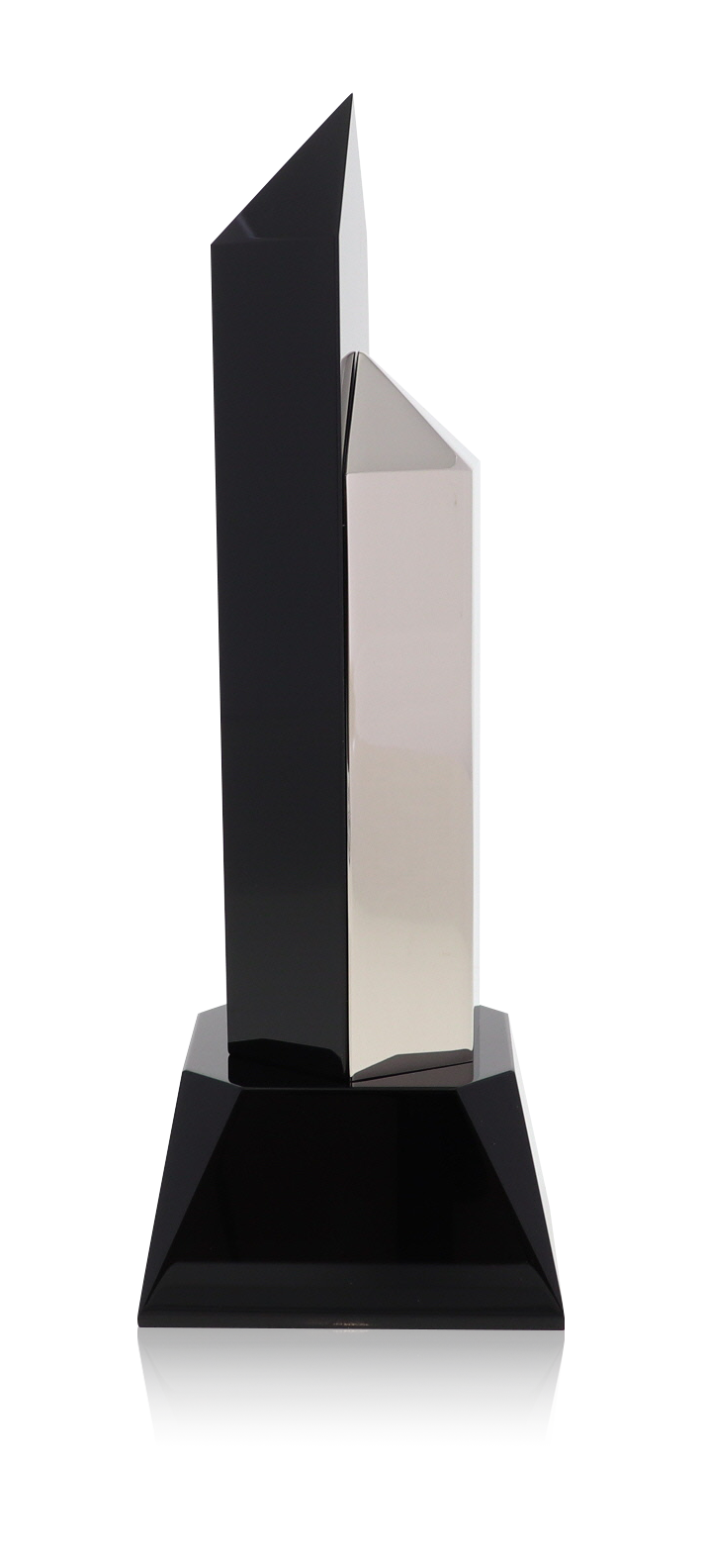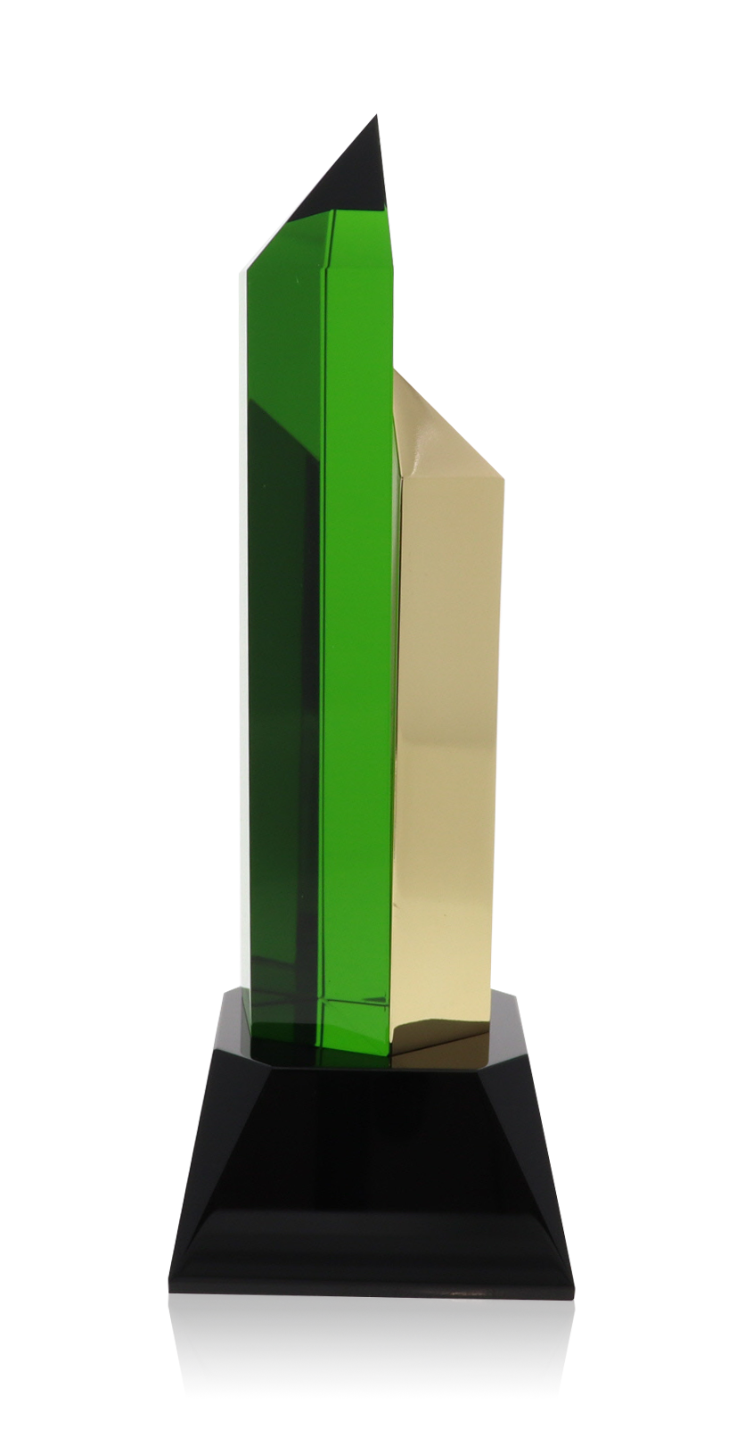 For creating your own custom award, see below our extensive hexagon crystal and metal options. These brilliant hexagon towers are available in sizes small (4"), medium (6"), large (8"), and extra large (10") with a wide range of color options that include blue, green, red, black, purple, clear, gold, and silver. While some combinations are shown below, these exclusive awards can be mixed and matched from the available sizes and colors to best represent your company or brand. Furthermore, they can be rotated to make either direction the front. We also have available an expansive base section for different clear and black bases.