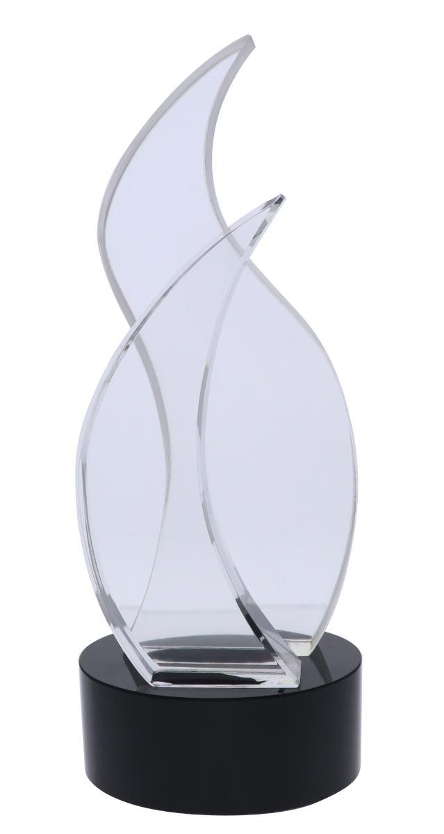 Originally designed for a 5-star luxury hotel casino’s tournament, the Waves Large Award is a wonderful, fun combination of clear lead-free crystal abstract flame shapes on a black crystal base. The front is entirely polished and the larger back piece has frosted edges for contrast and interest.