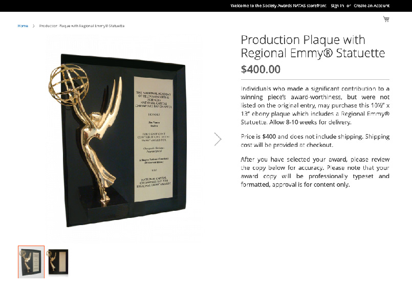 We offer high-end e-commerce storefronts to select clients who wish to increase statuette reorders and streamline the ordering process for customers. We offer a branded web experience complemented by our world-class service and logistics.